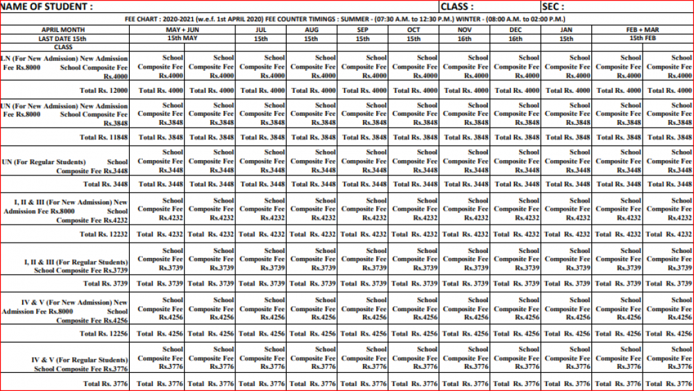 Fee Structure W.H. Smith Memorial School, Varanasi for year 20242025 , Free to download and print.